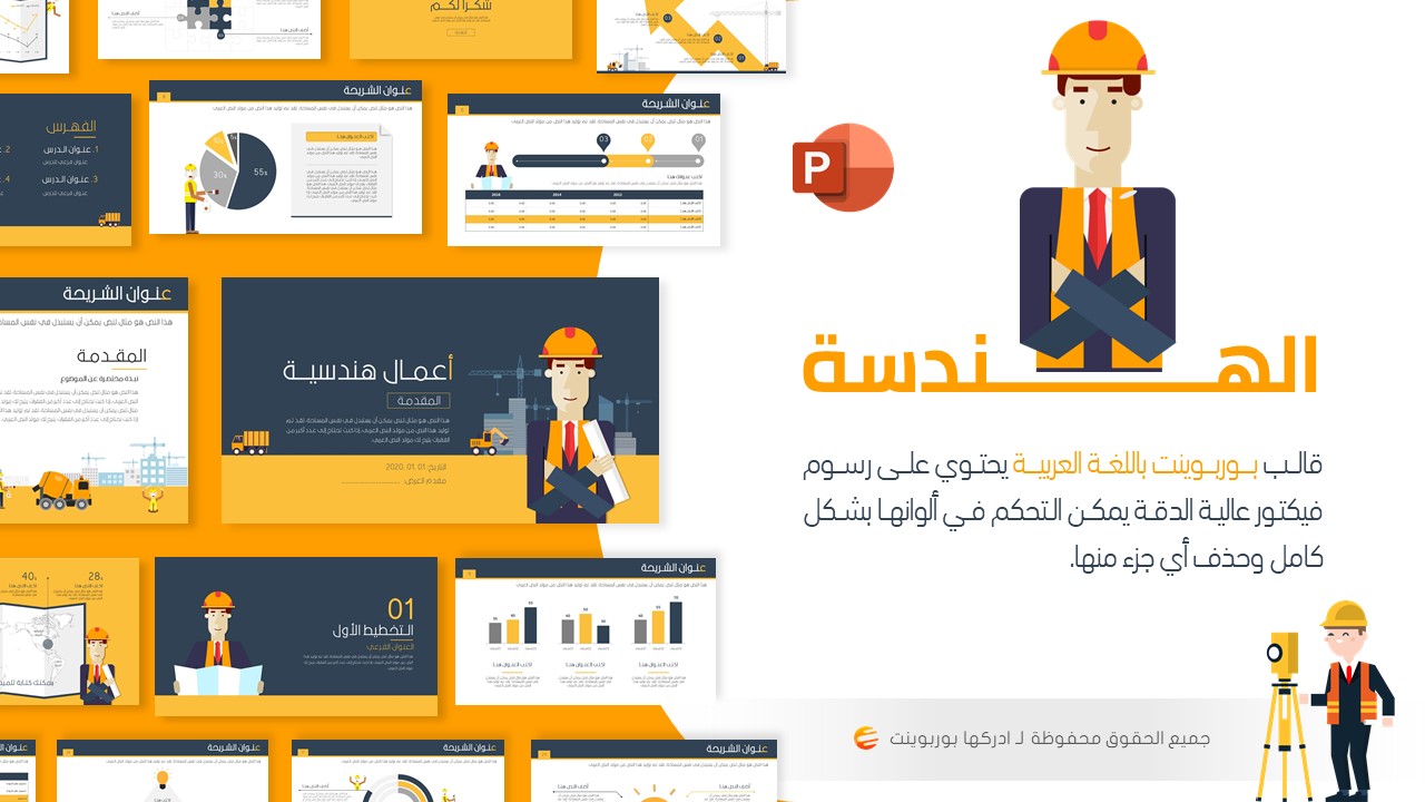 تصميم بوربوينت عربي جاهز لإعداد الموضوعات الهندسية ادركها بوربوينت