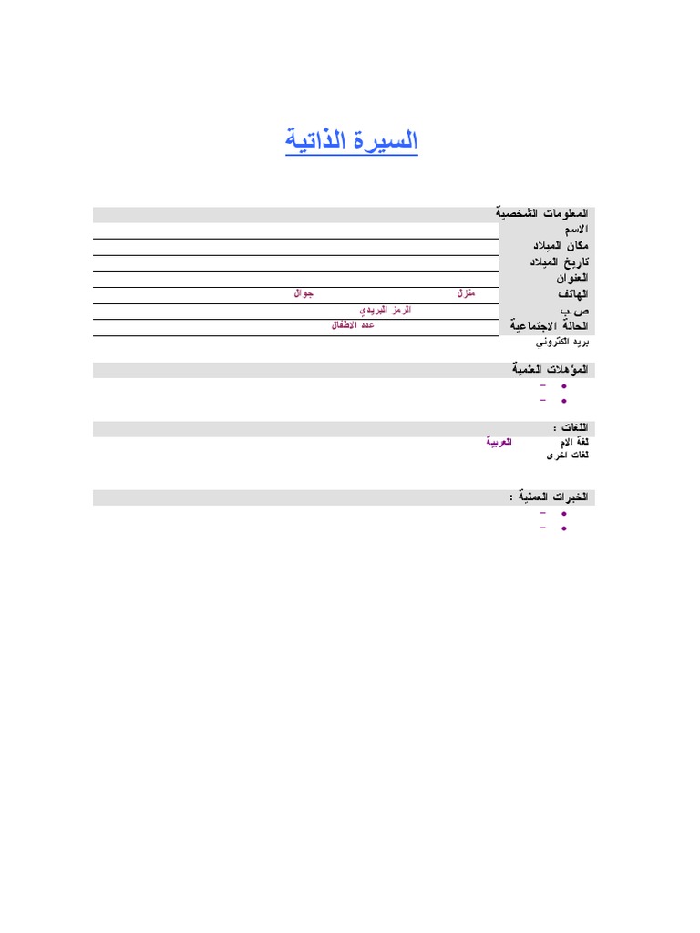 نموذج سيرة ذاتية وورد مختصرة Doc عربي وانجليزي صحيفة وظائف كوم